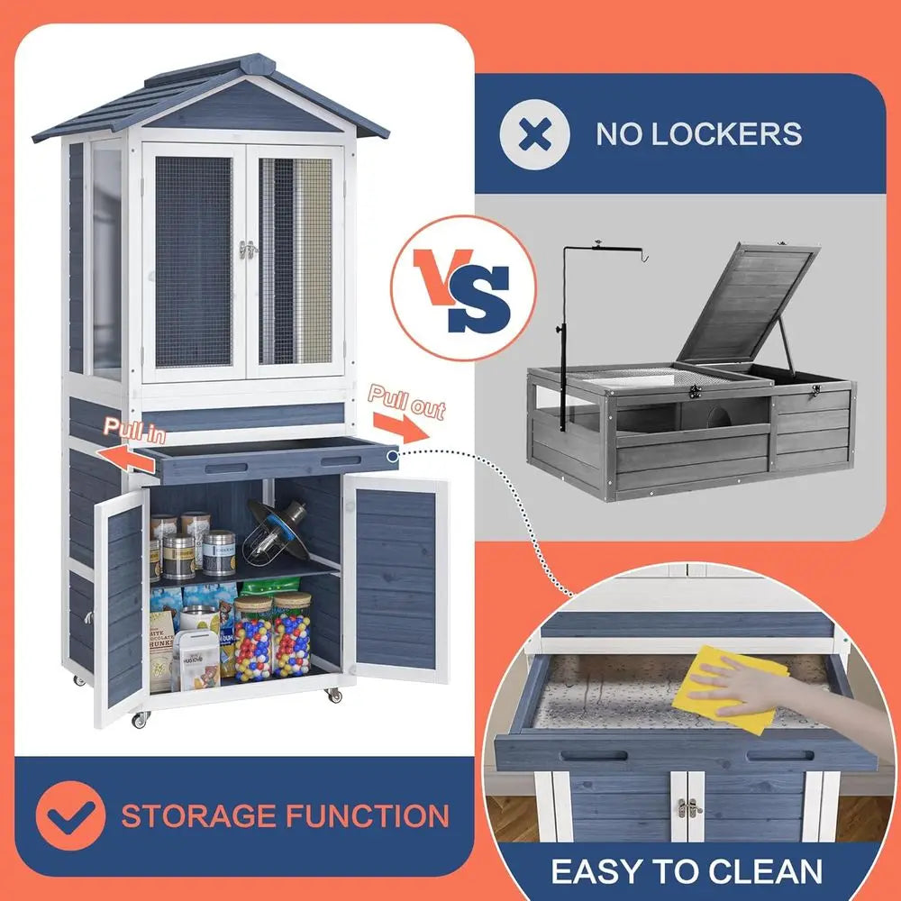 The enclosure boasts excellent ventilation with its metal mesh and a transparent acrylic viewing window, allowing you to observe your pet from any angle with clear visibility. Cleaning is made simple with the included pull-out aluminium alloy tray for easy waste removal and substrate changes. The enclosure is mounted on four 360° swivel castors with brakes, making it easy to move around.